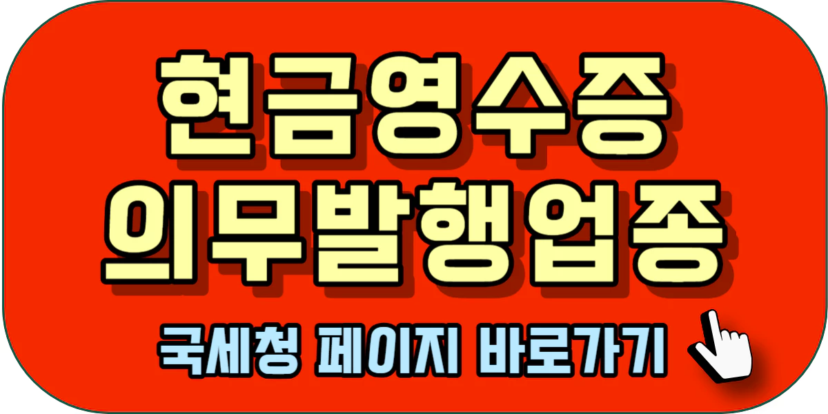 카테고리 없음 현금영수증 의무발급업종 - 국세청 홈페이지 바로가기 by 유용한 링크 페이지 2023. 7. 19. 아래는 현금영수증 의무발급업종이 나와있는 국세청홈페이지 링크입니다. 필요하신분은 참고하세요. < 국세청 홈페이지 바로가기 > 공유하기 게시글 관리 유용한 사이트 저작자표시 (새창열림)