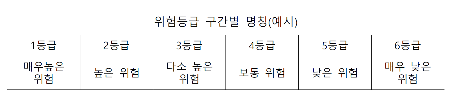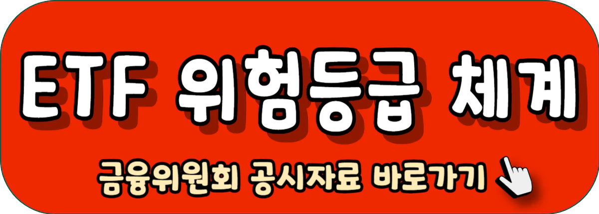 ETF 투자상품에는 위험등급을 공시해야 합니다. 위험등급은 1등급부터 6등급까지 총 6개의 등급으로 이루어져 있습니다. 투자 위험도에 따라 가장 위험한 등급이 1등급입니다.